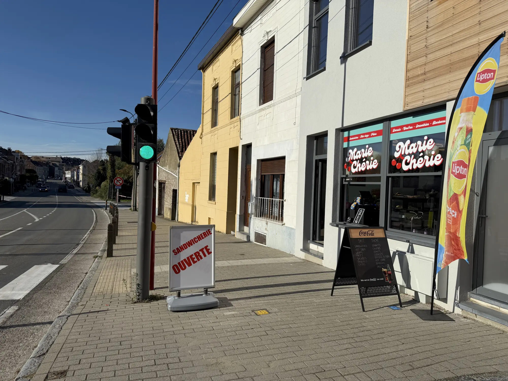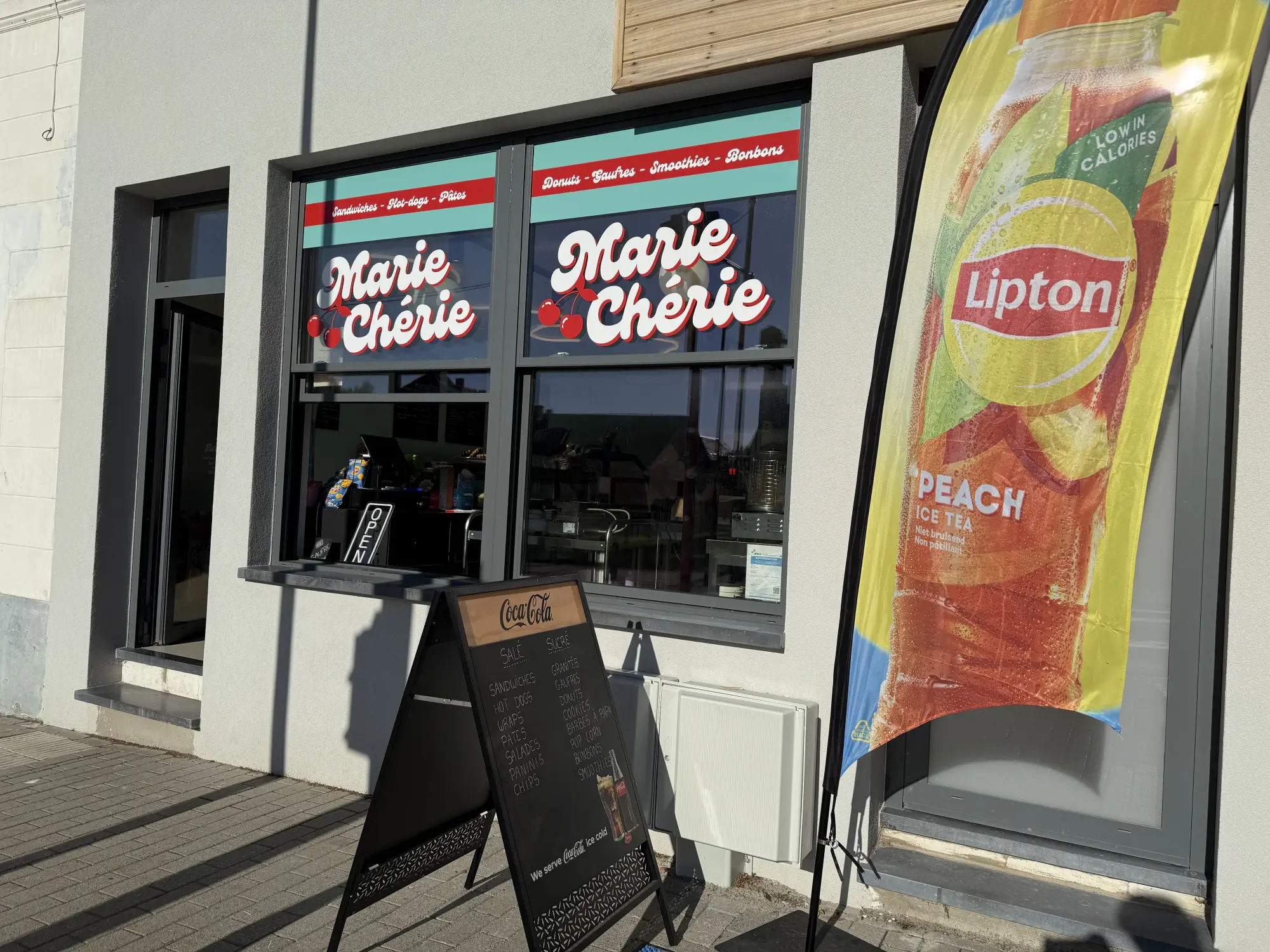 Marie Chérie, située au 77 Chaussée de Mont-Saint-Jean à Braine-l'Alleud, est bien plus qu'une simple sandwicherie. Ce commerce local se spécialise dans une variété de délices qui raviront vos papilles. Que vous soyez en quête d'un sandwich savoureux, d'un hot dog réconfortant ou de pâtes savoureuses, ce lieu est le rendez-vous idéal pour une pause gourmande. Vous y trouverez également une sélection de boissons rafraîchissantes, de smoothies vitaminés, ainsi que des douceurs comme des bonbons, gaufres et donuts, parfaits pour satisfaire toutes vos envies sucrées.